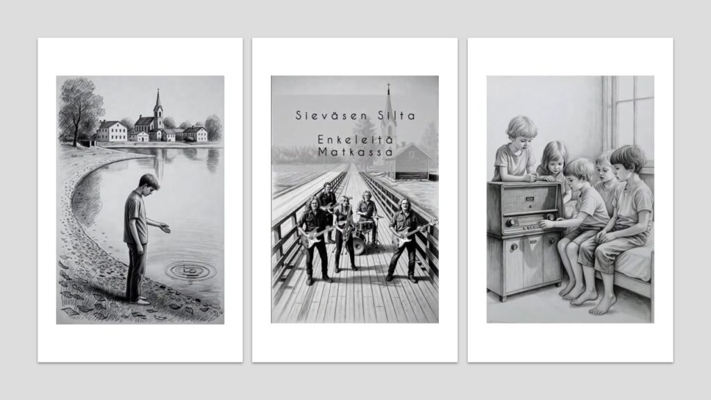 Kun tarinasuoni oli lähtenyt kukkimaan, oli vaikea pysähtyä. Heti perään työstin kappaleet Uusi Alku ja Enkeleitä Matkassa. Siinä samalla ymmärsin luoneeni oikean kuvitteellisen yhtyeen, joka tarinoi rehellistä Suomirokkia. Mutta yhtyeellä ei ollut nimeä. Niinpä kävin miettimään nimeä. Mikä olisi tarinarokkia soittavalle yhtyeelle oikea nimi? Haeskelin mielessäni kaikenlaisia äijämäisiä nimiä, mutta ei vain tuntunut osuvan kohdalle. Kyselin myös tekoälyltä nimivinkkejä, mutta vaikka ne eivät olleet huonoja, ei niistä mikään kolahtanut. Jotenkin nimen piti olla yksinkertainen, ehkä hieman outo. Sitä hakiessa sitten lopulta päähän pamahti Sieväsen Silta. Siinähän se oli: Sieväsen Silta.